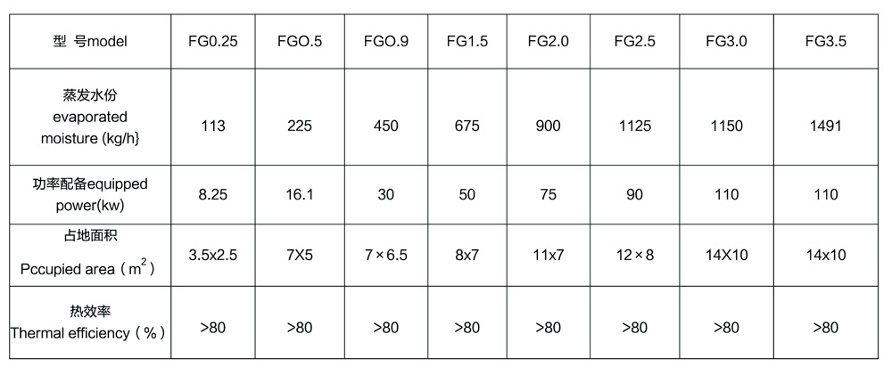 注:表中水份蒸發量是以玉米淀粉,初水份40%,終水份13.5%,進風溫度20℃時測定