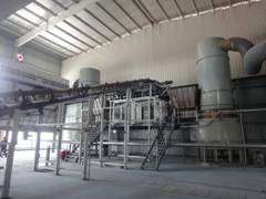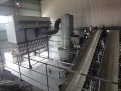 由常州市范群干燥設(shè)備有限公司生產(chǎn)的2萬噸/年白碳黑干燥裝置日前在浙江橫店通過驗收,該裝置由燃煤熱風(fēng)系統(tǒng)、加料系統(tǒng)、閃蒸干燥系統(tǒng)、布袋收塵系統(tǒng)、自動包裝系統(tǒng)等組成。針對白碳黑濾餅含水量高、耐溫高及產(chǎn)品比重小的特點,熱源采用了間接式燃煤熱風(fēng)爐,熱風(fēng)溫度高達500℃以上,進料系統(tǒng)采用皮帶輸送和螺旋加料相結(jié)合,干燥主機采用直徑2米的閃蒸干燥機,直接配套布袋除塵器收集產(chǎn)品,并由自動包裝機完成產(chǎn)品包裝。整套裝置自動化程度高,在人員配置及噸耗等重要指標(biāo)達到了設(shè)計水平。