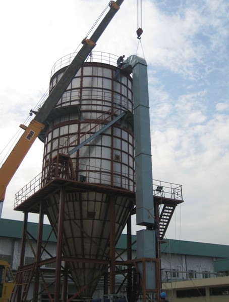 該套設(shè)備是專門為發(fā)酵液噴霧干燥而設(shè)計,要求產(chǎn)品具有生物活性。全套設(shè)備包括熱風(fēng)系統(tǒng)、噴霧干燥塔、袋式除塵器等,是我司到目前為止在國外現(xiàn)場施工的最大噴霧干燥機(jī)。