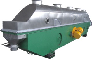 物料自進料進口進入機內,在振動力作用下,物料沿水平面流化床拋擲,向前連續運動,熱風向上穿過流化床同濕物料換熱后,濕空氣經旋風分離器除塵后由排風1:3排出,干燥物料由排料進口排出。