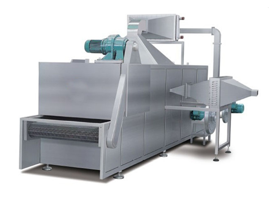 物料由加料器均勻地鋪在網(wǎng)帶上,網(wǎng)帶采用12-60目不銹鋼絲網(wǎng)。由傳動裝置拖動在網(wǎng)帶式干燥機內(nèi)移動。網(wǎng)帶式干燥機由若干單元組成,每一單元熱風獨立循環(huán),部分尾氣由專門排濕風機排出,廢氣由調(diào)節(jié)閥控制,熱氣由下往上或由上往下穿過鋪在網(wǎng)帶上的物料,加熱干燥并帶走水分。網(wǎng)帶緩慢移動,運行速度可根據(jù)物料溫度自由調(diào)節(jié),干燥后的成品連續(xù)落入收料器中。上下循環(huán)單元根據(jù)用戶需要可靈活配備,單元數(shù)量可根據(jù)需要選取。